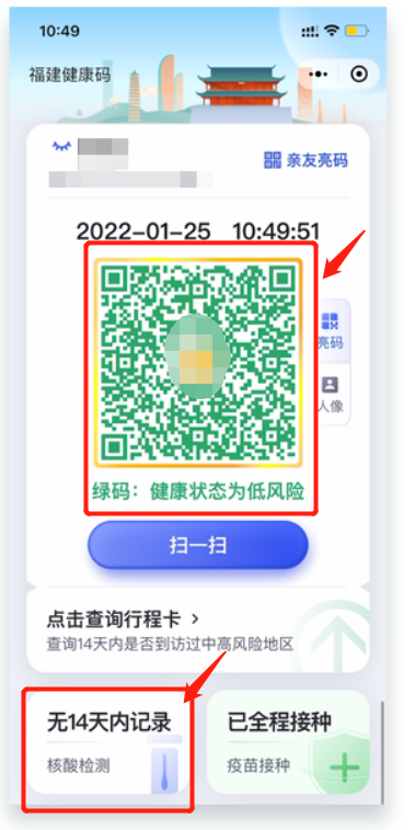 “福建健康码”查看健康码下方的核酸检测日期和结果