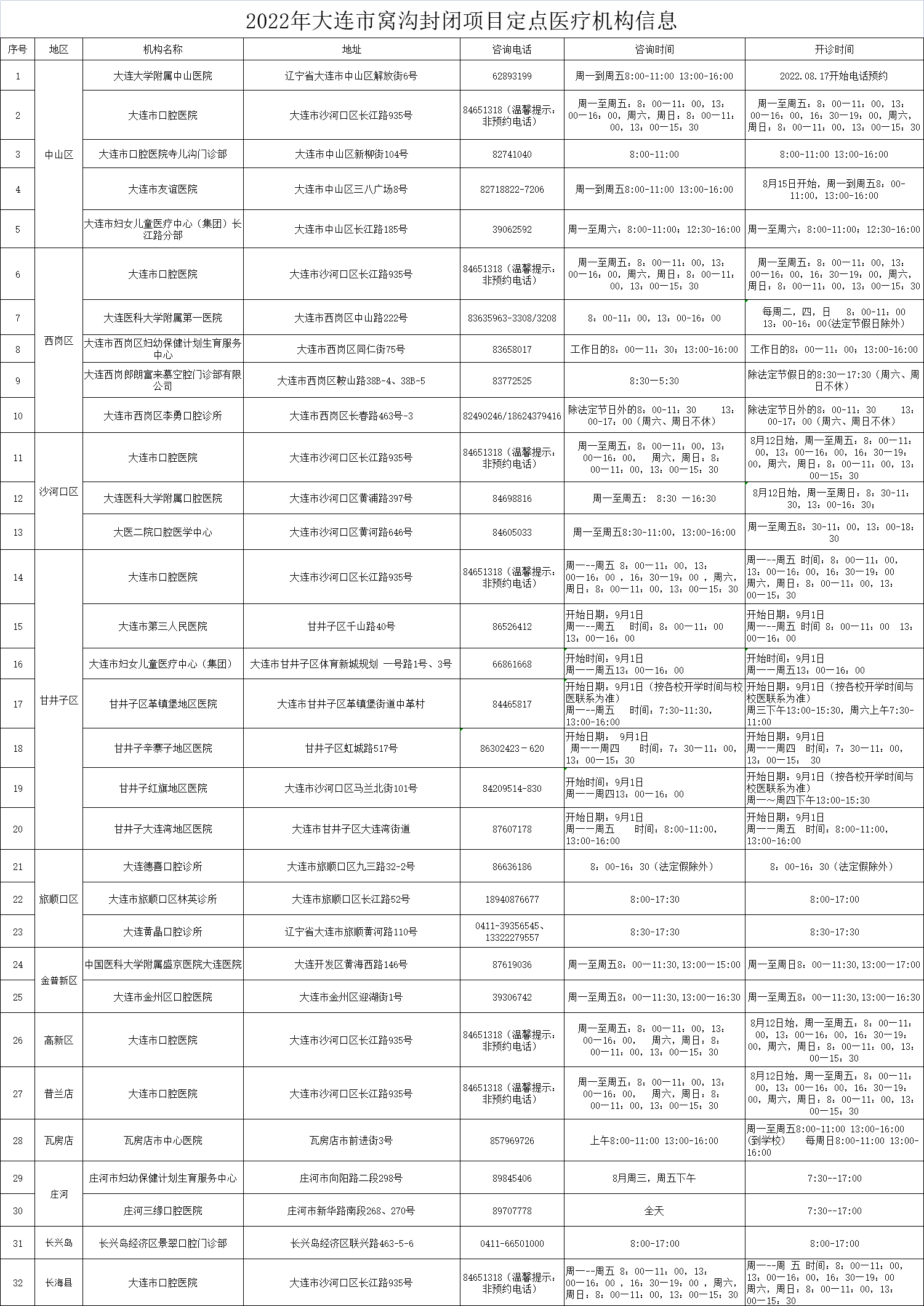 2022年大连适龄儿童免费窝沟封闭定点医院名单公布