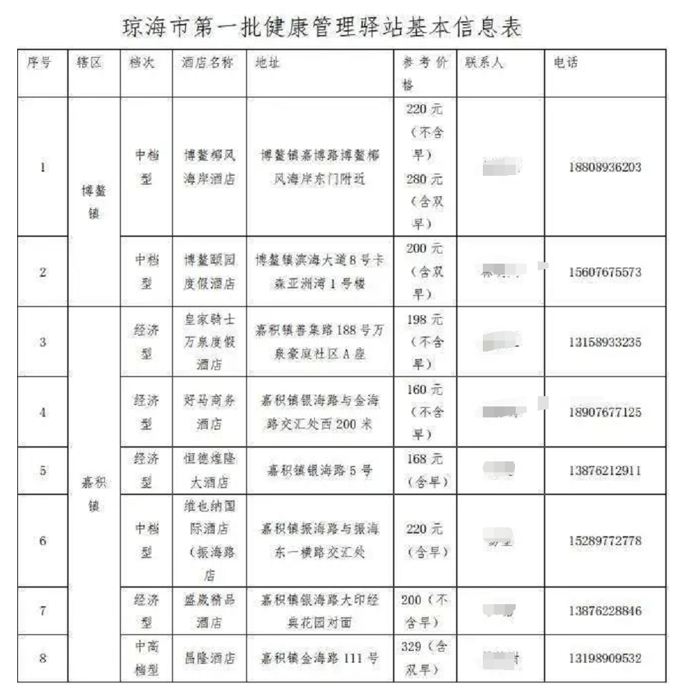 注:以上酒店房间是健康管理驿站的优惠参考价,具体房型价格请电话咨询或面谈。入住健康管理驿站的旅客应根据琼海市疫情防控政策要求切实做好健康管理和自我防护。为保证旅客如期返程,请认真填写“琼海市滞留旅客自驾出岛信息表”小程序,如有信息变化,请及时更新填报信息。