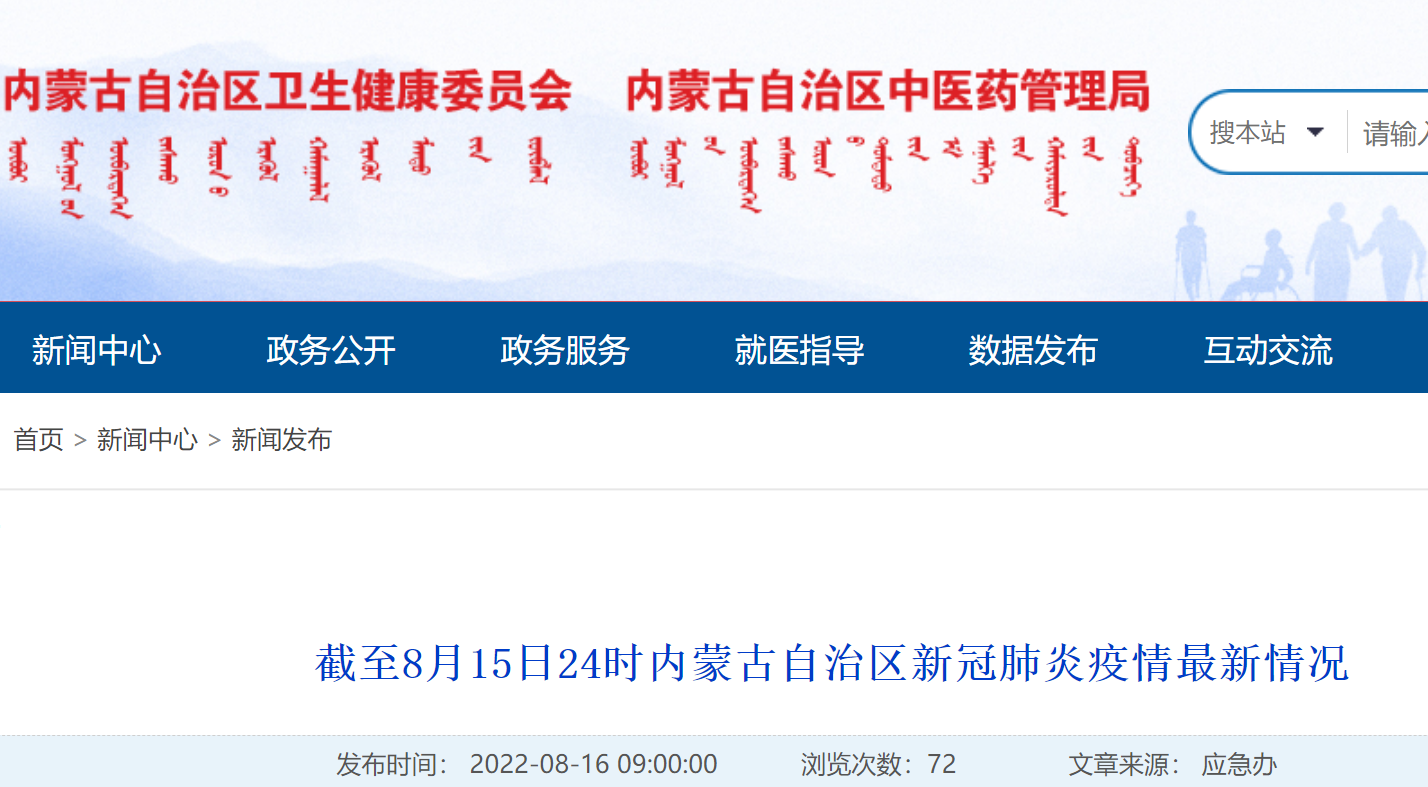 截至8月15日24时内蒙古自治区新冠肺炎疫情最新情况