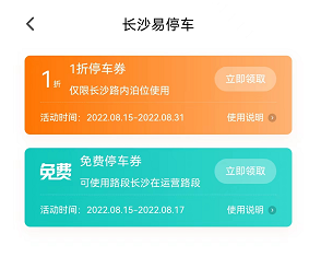活动期间车主可在“长沙易停车”APP/公众号/小程序、“我的长沙”APP领取免费停车券。每用户每天限领3张免费停车券