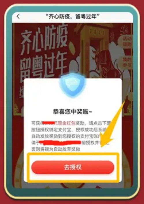 第五步 抽奖成功,需要授权支付宝即可获取奖励。