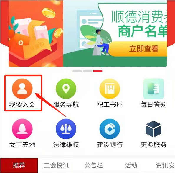 ①下载“顺工惠”APP后,点击首页-我要入会。