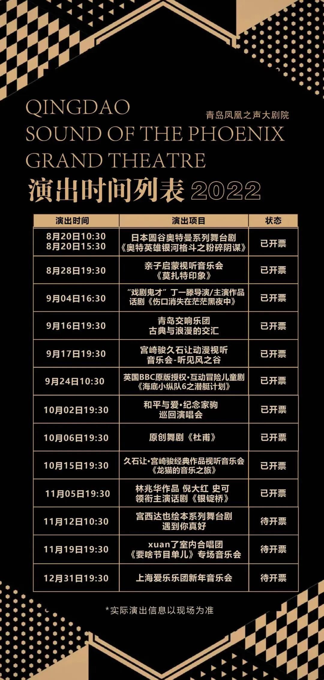 4、为了保障您的观演权益,演出前请合理安排出行,并关注国内本土疫情动态,配合青岛市疫情防控措施。