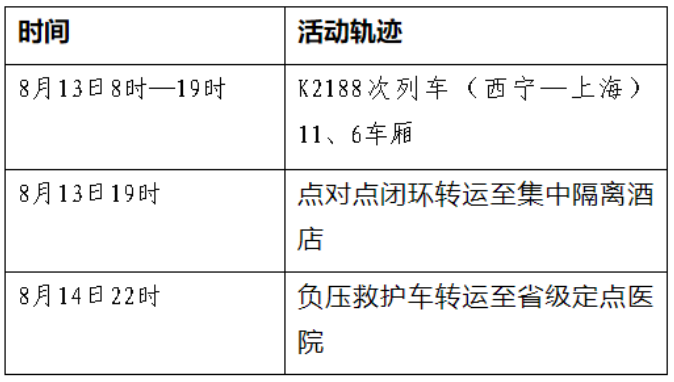 无症状感染者1:男,42岁,8月13日乘坐火车途经陕西时,接到外省协查,按疫情防控要求随即就近在宝鸡下车,第一时间落地管控,点对点闭环转运至隔离酒店集中隔离。集中隔离期间核酸检测结果阳性,经医疗专家组诊断为无症状感染者,目前在定点医疗机构隔离治疗。
