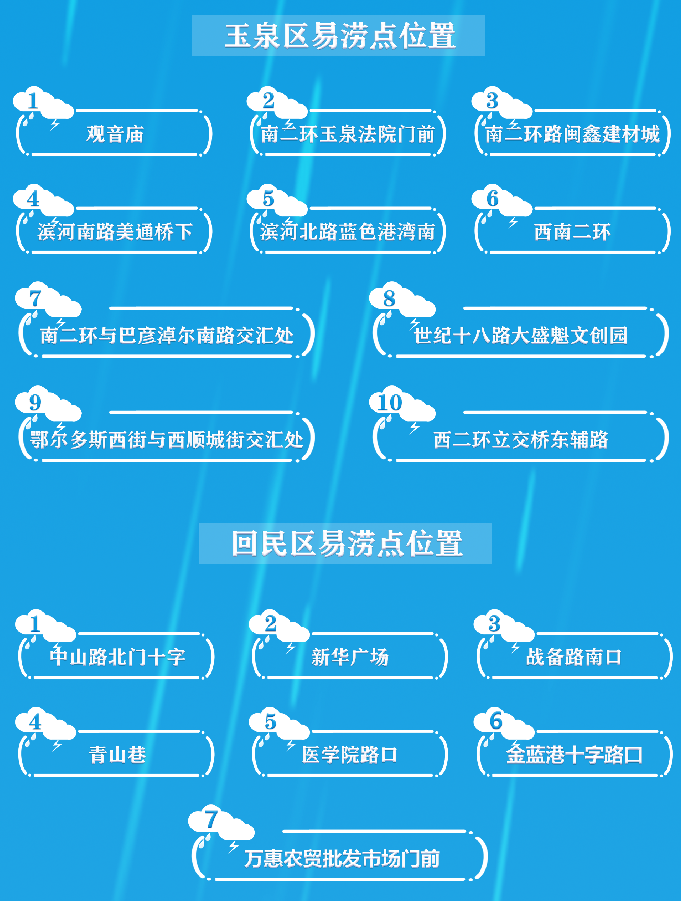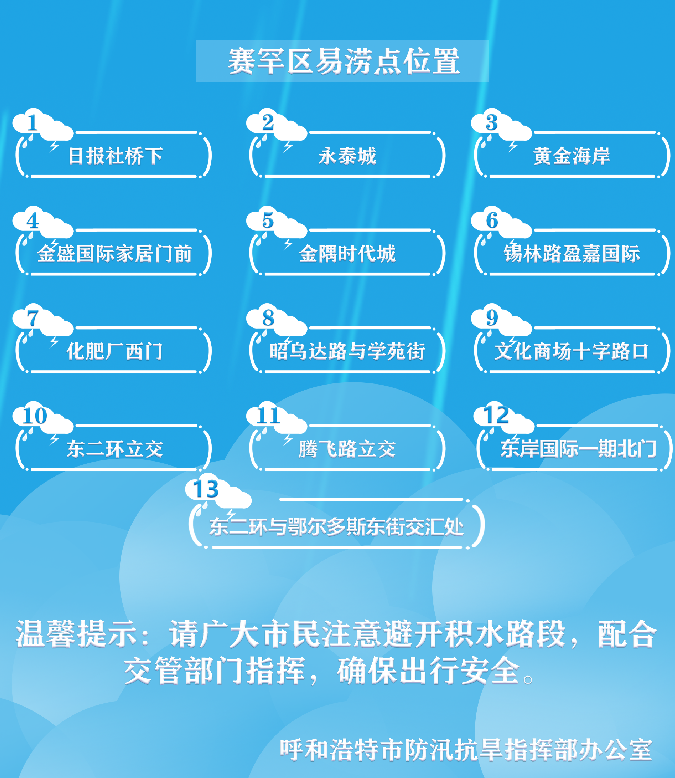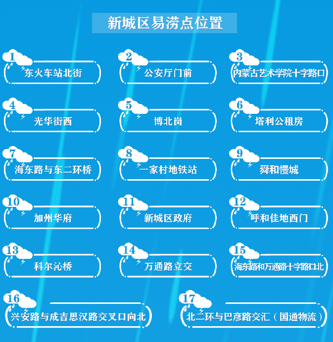 呼和浩特市防汛抗旱指挥部办公室公布城区65处易涝点