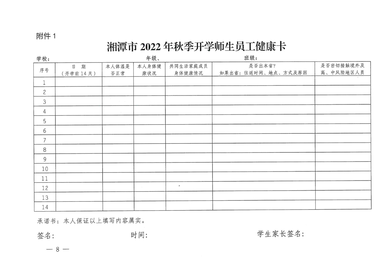 附件1:湘潭市2022年秋季开学师生员工健康卡