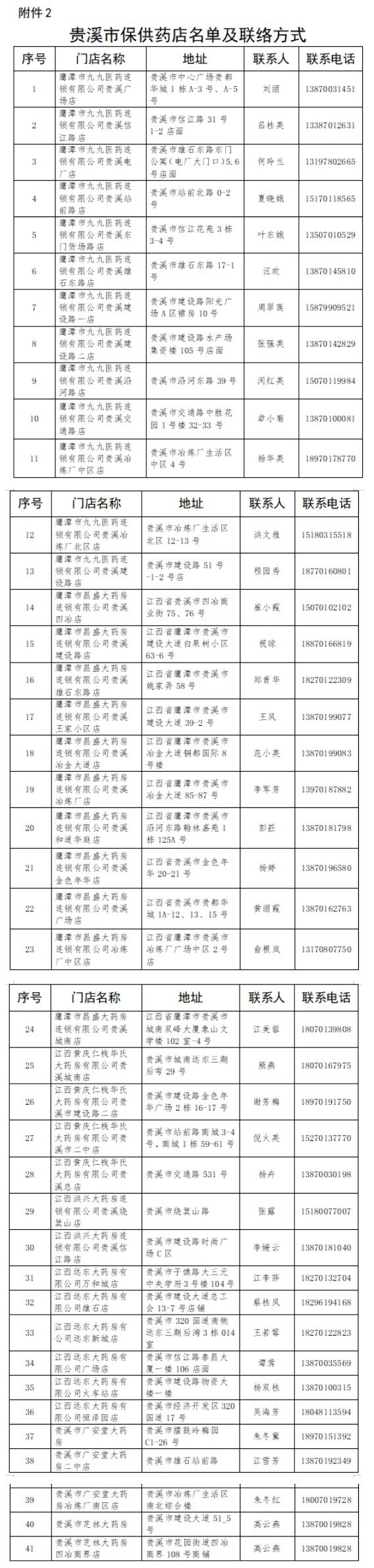 2.贵溪市保供药店名单及联络方式