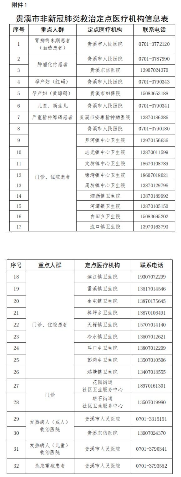 1.贵溪市非新冠肺炎救治定点医疗机构信息表