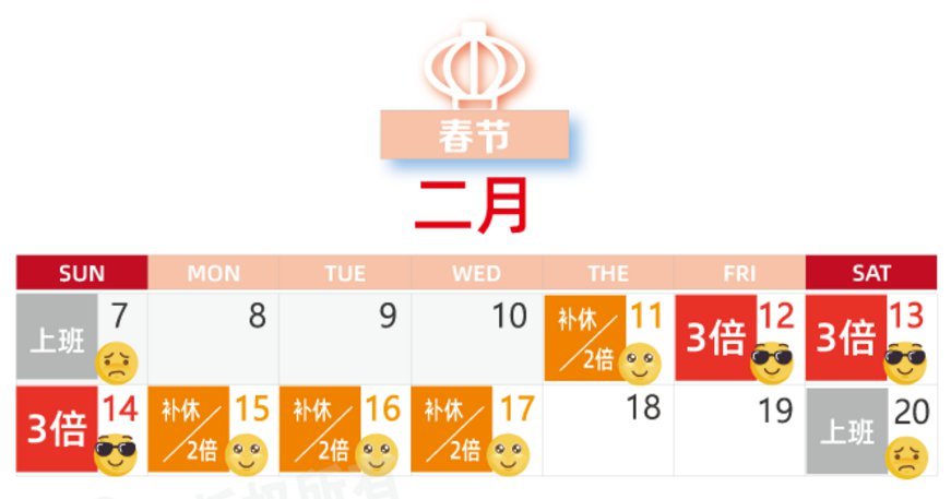 2021年春节安排为: