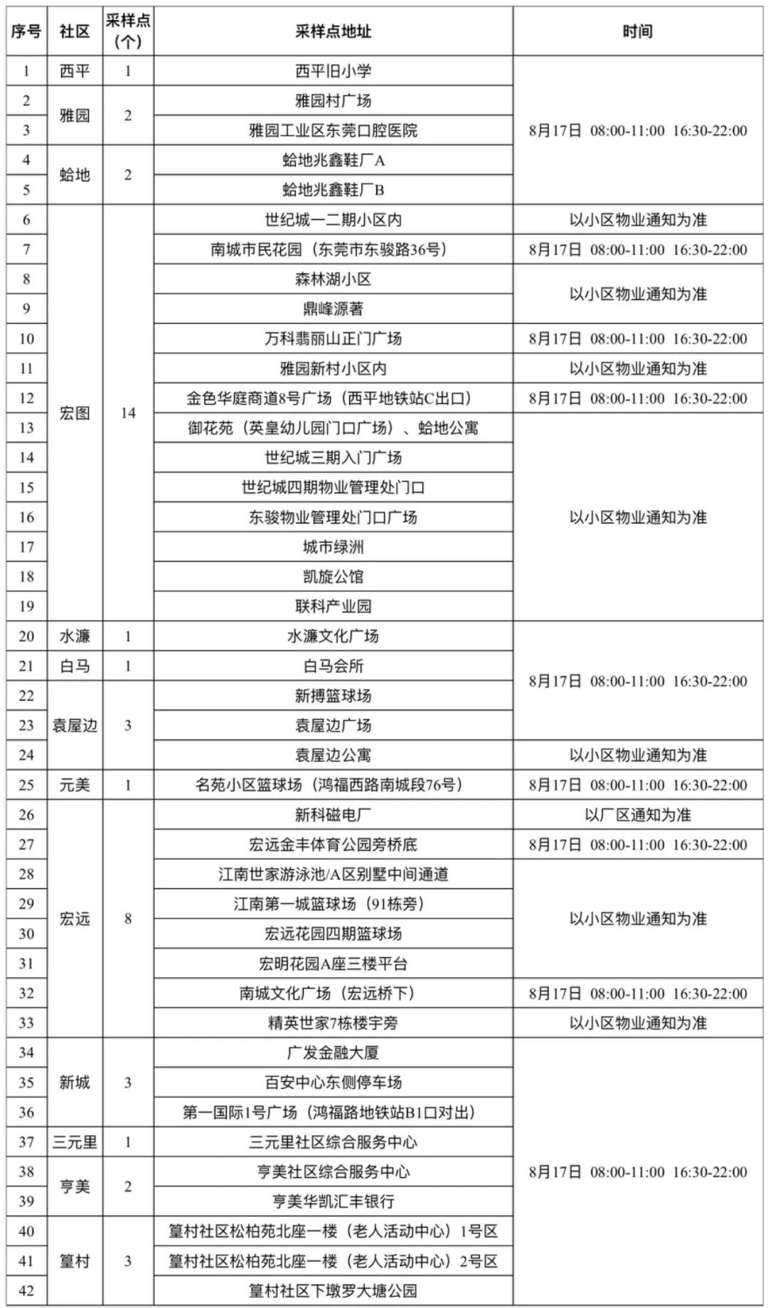 3、区域核酸期间,以下便民核酸采样点(每日更新)正常开放,有需要的市民可前往检测。便民核酸点主要方便来、返莞群众或有紧急核酸需求群众采样,其他群众请根据社区核酸检测安排参与采样。