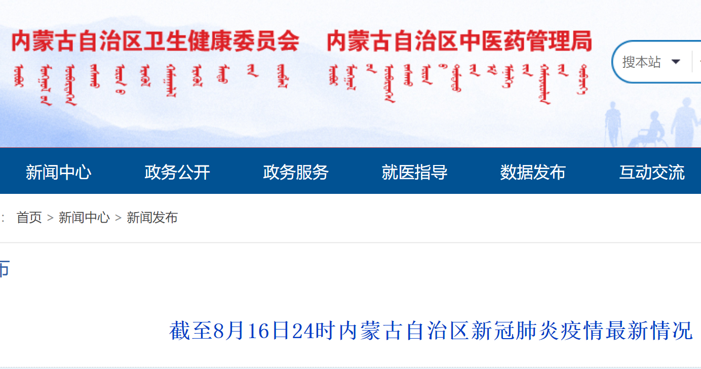 截至8月16日24时内蒙古自治区新冠肺炎疫情最新情况