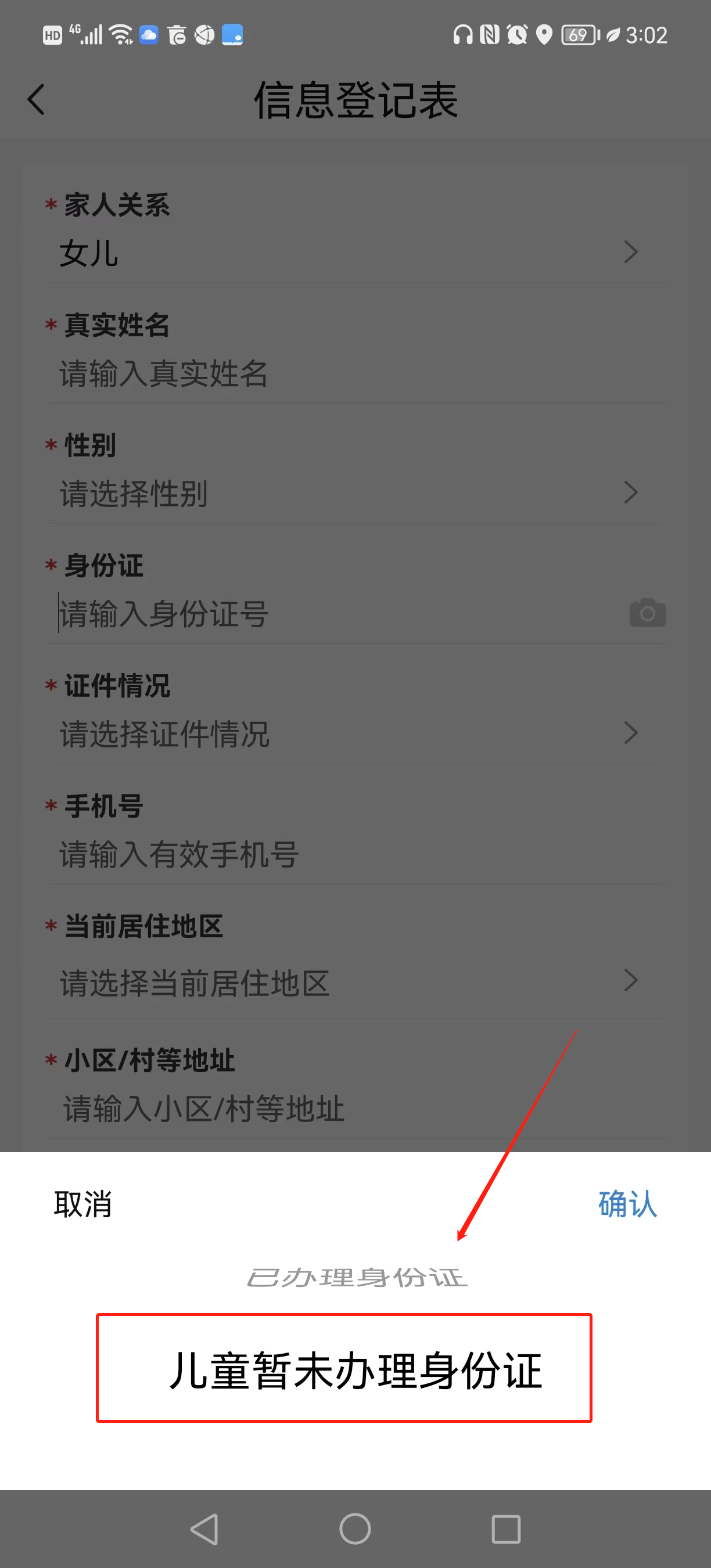 答:16岁以下的,如没有显示“已实名”,可以在“更换家庭成员——编辑”中,将“证件情况”改为“儿童暂未办理身份证”,重新进行实名认证。