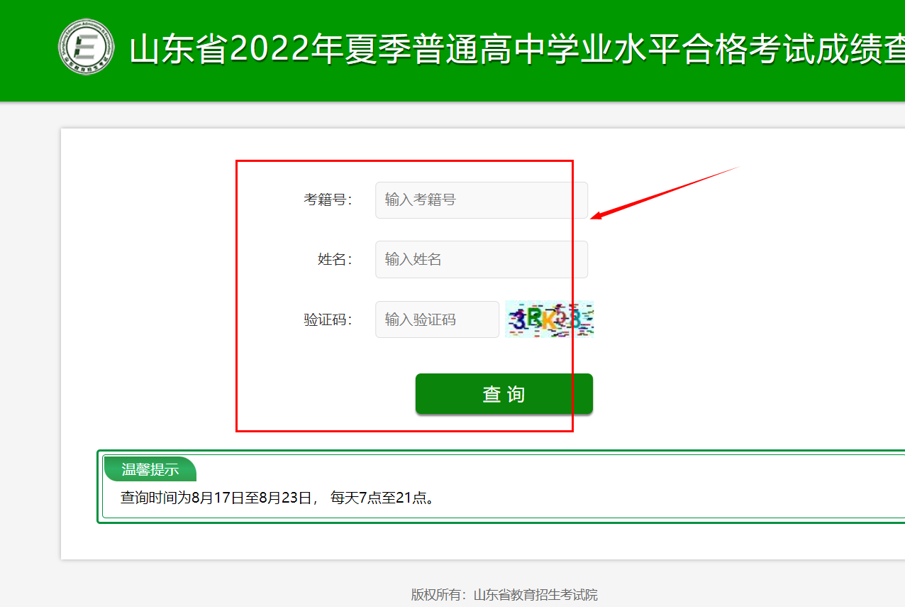 山东省2022年夏季普通高中学业水平合格考试成绩于8月17日发布。考生可于8月17日-8月23日每天7:00-21:00登录官网查询成绩。