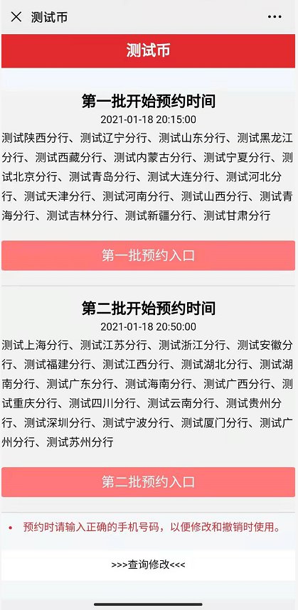 ▣ 从测试界面再次确认,这次牛年纪念币将分两批预约。