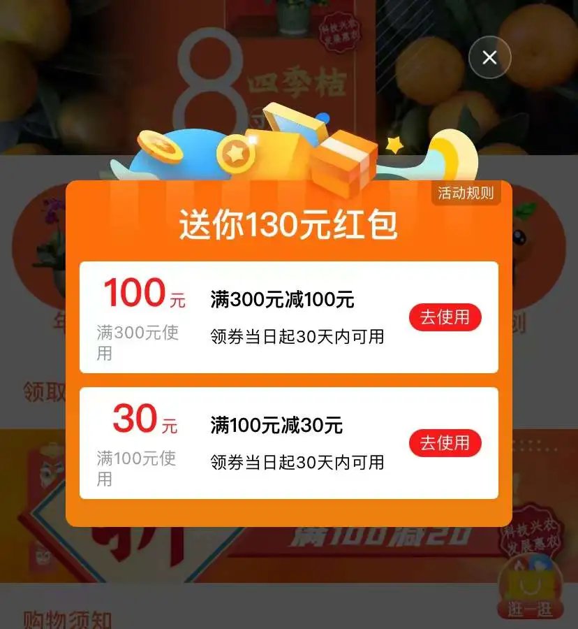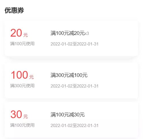 优惠券面额:“满300减100”“满100减30”