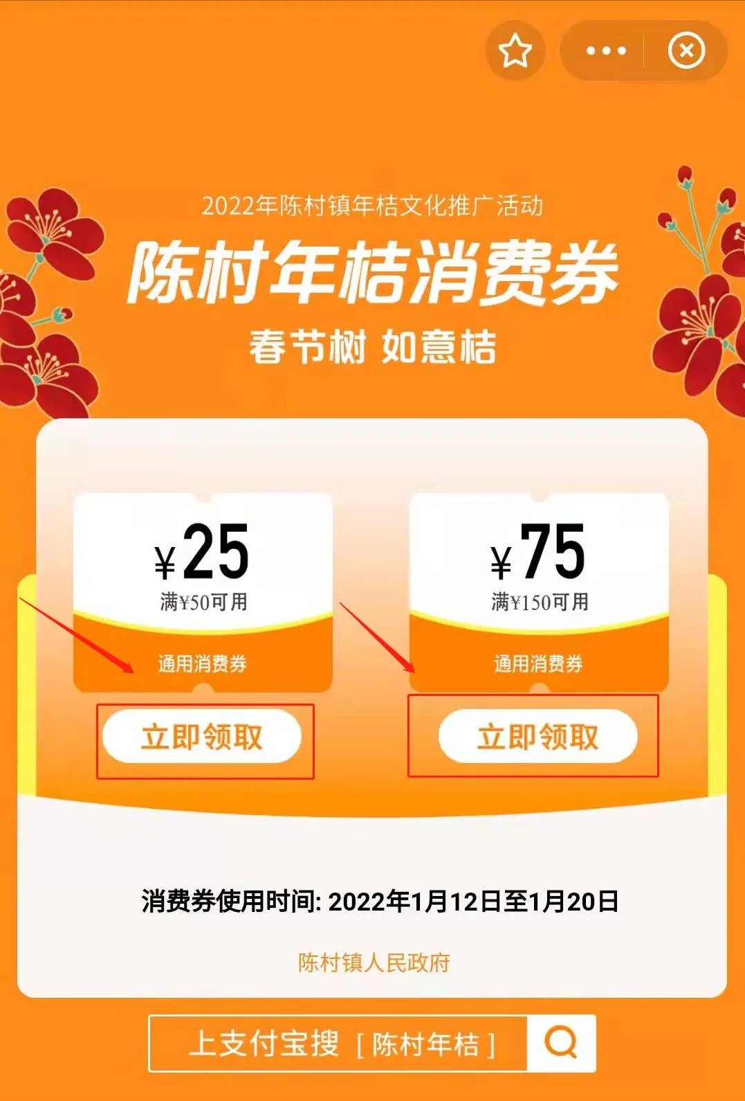 2022年佛山陈村镇年桔消费券获取攻略