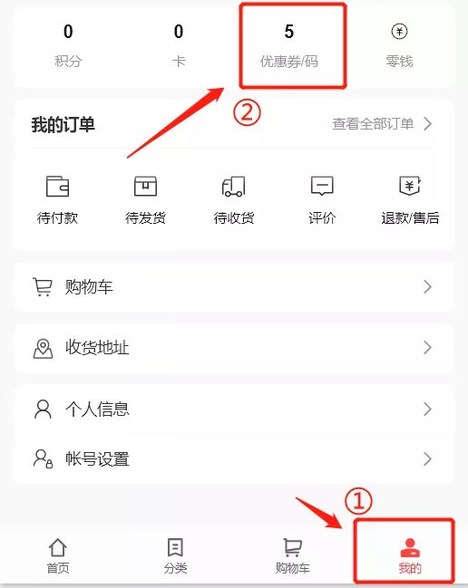 3、进入个人中心,查看领取优惠券