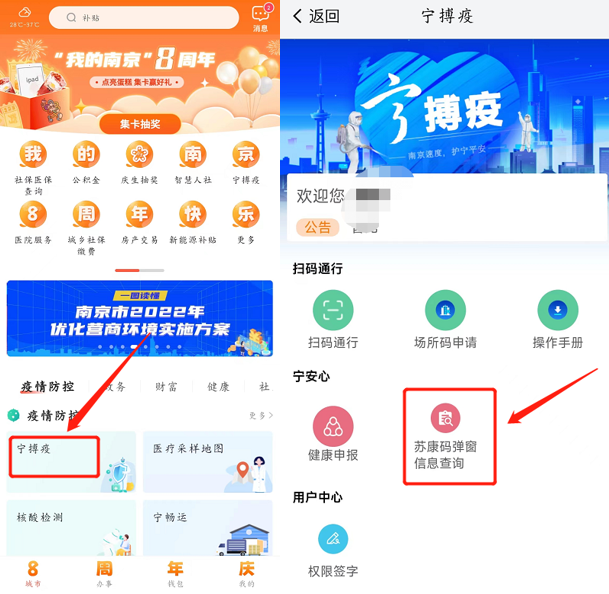 “我的南京”APP提供手机端查询弹窗原因服务。市民可在“我的南京”—“宁搏疫”—“苏康码弹窗信息查询”内查询被弹窗原因。