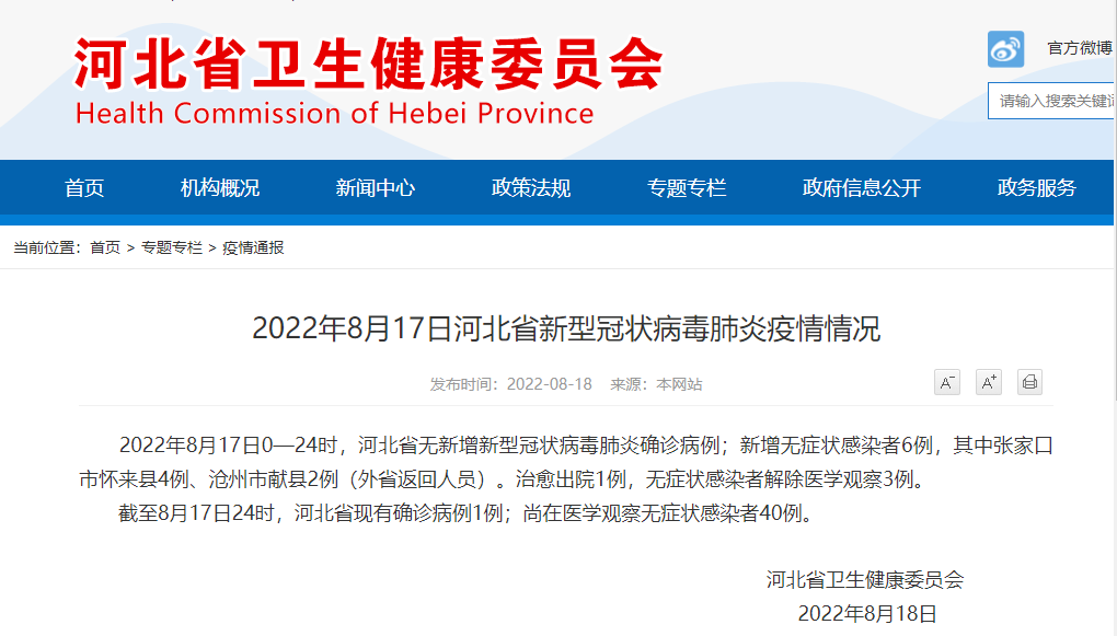 2022年8月17日河北省新增无症状感染者6例