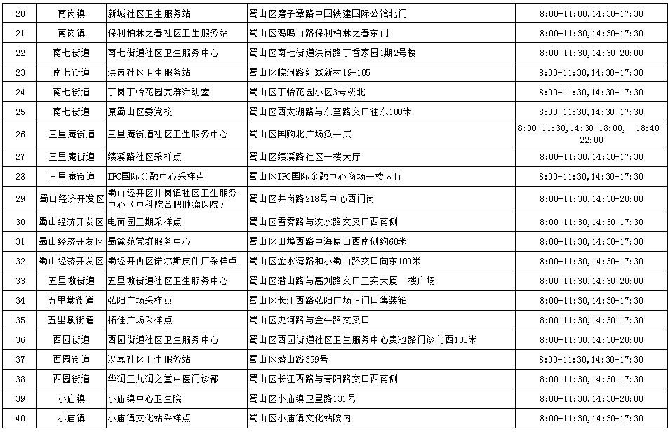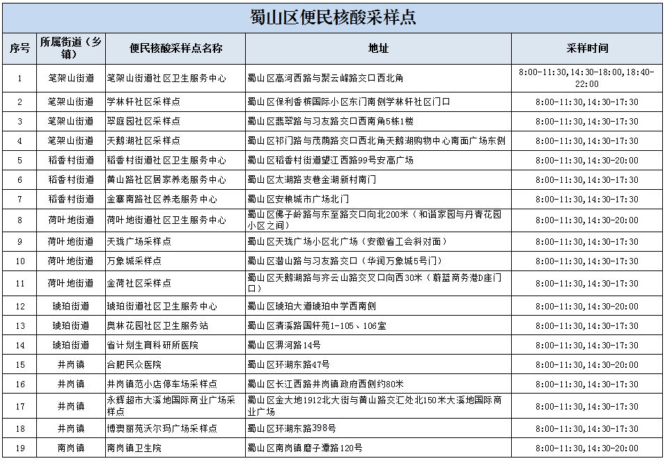 合肥蜀山区免费便民核酸检测点(合肥蜀山区免费便民核酸检测点查询)