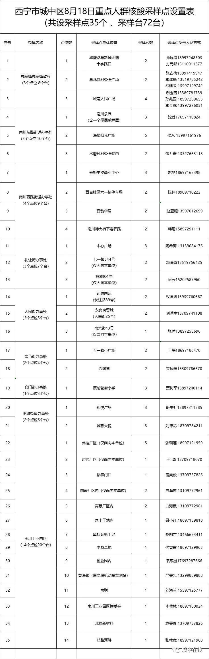 西宁城中区8月18日核酸检测通告