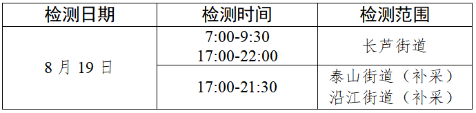 南京江北新区8月19日在部分区域开展核酸检测和补采