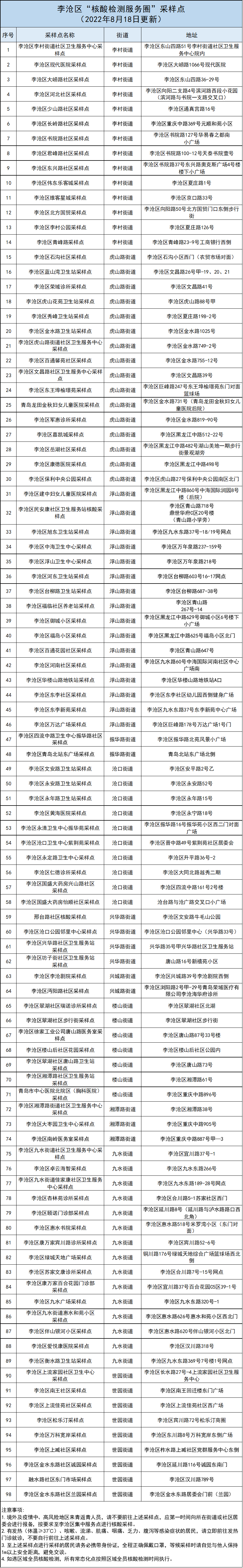 李沧区“核酸检测服务圈”采样点详情见本通告下方。