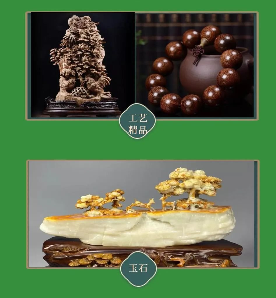 红木展区:古典家具、红木家具、红木工艺品、沉香、根雕、根艺等。