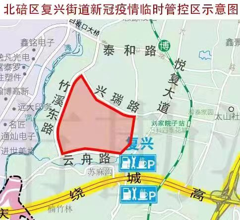 管控区域:北碚区复兴街道竹溪东路1477号(详见下图红线区域)