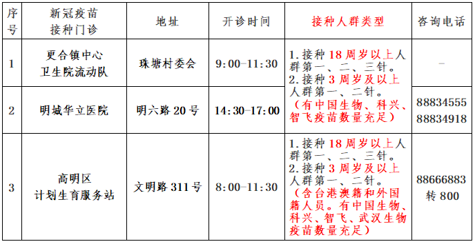 点击查看:高明区各新冠疫苗接种门诊开诊情况。