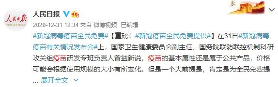 国家卫生健康委员会副主任、国务院联防联控机制科研攻关组疫苗研发专班负责人曾益新说,疫苗的基本属性还是属于公共产品,价格可能会根据使用规模的大小有所变化。但是一个大前提是,肯定是为全民免费提供。