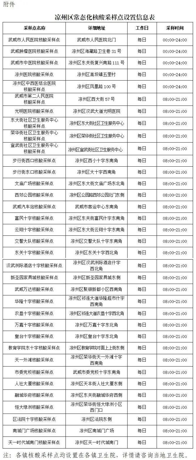 甘肃凉州区常态化核酸采样点地址+时间2022