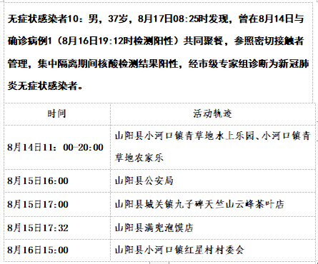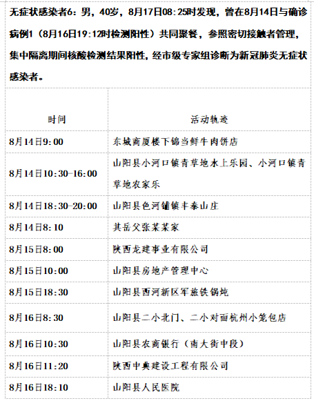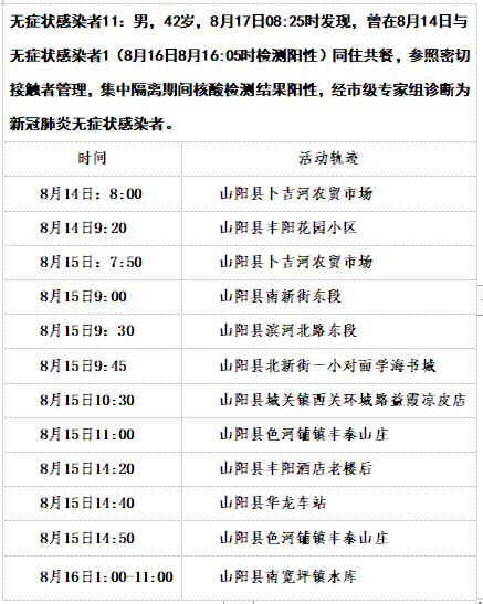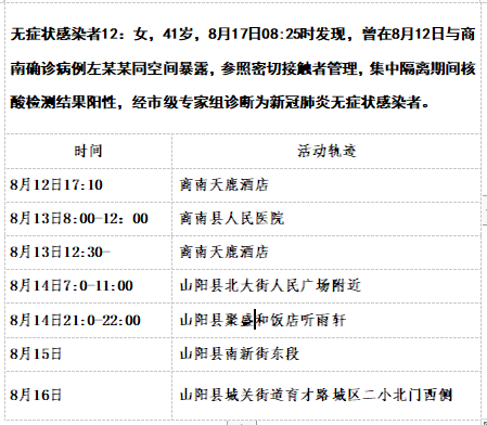截至8月17日12时商洛山阳县本土新增15例活动轨迹详情: