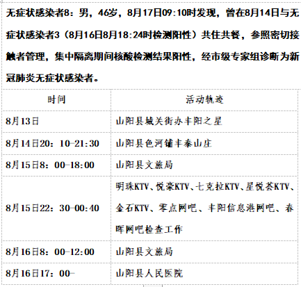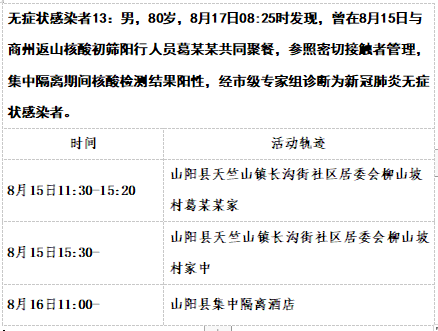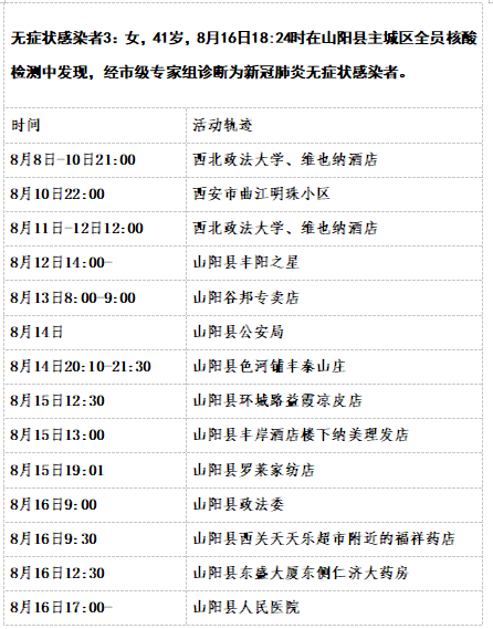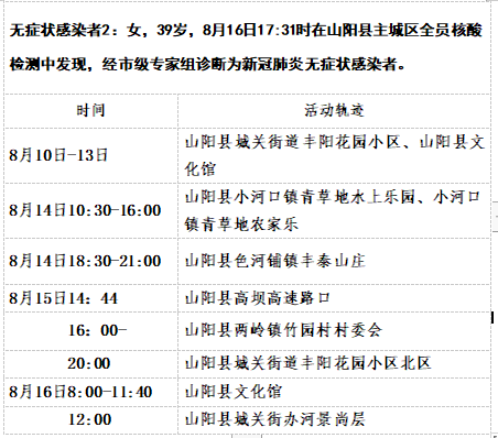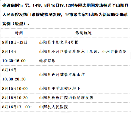 截至8月17日12时商洛山阳县本土新增15例活动轨迹