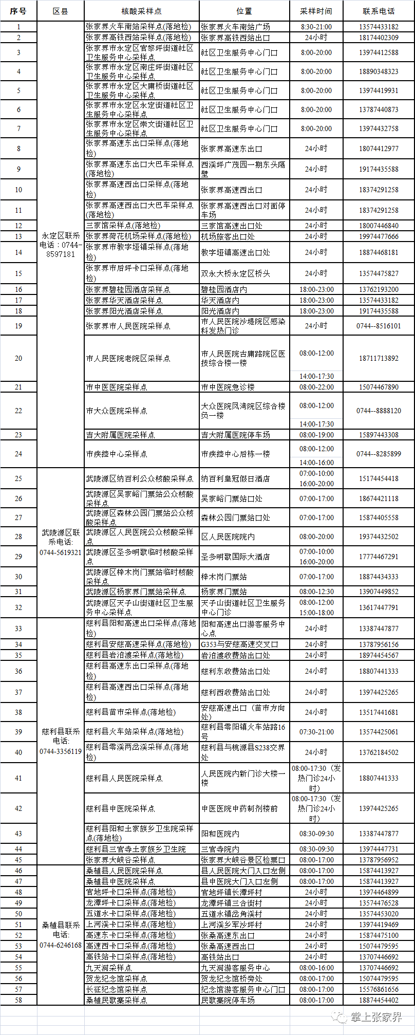 张家界常态化开放核酸采样点一览表