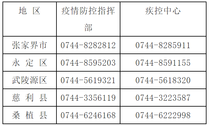 张家界市市县两级疫情防控指挥部和疾控中心24小时值班电话