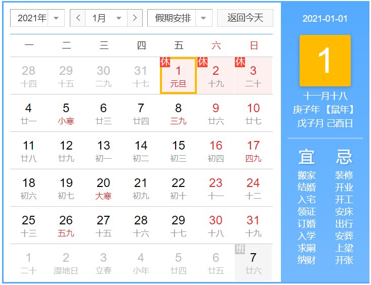 元旦假期安排: