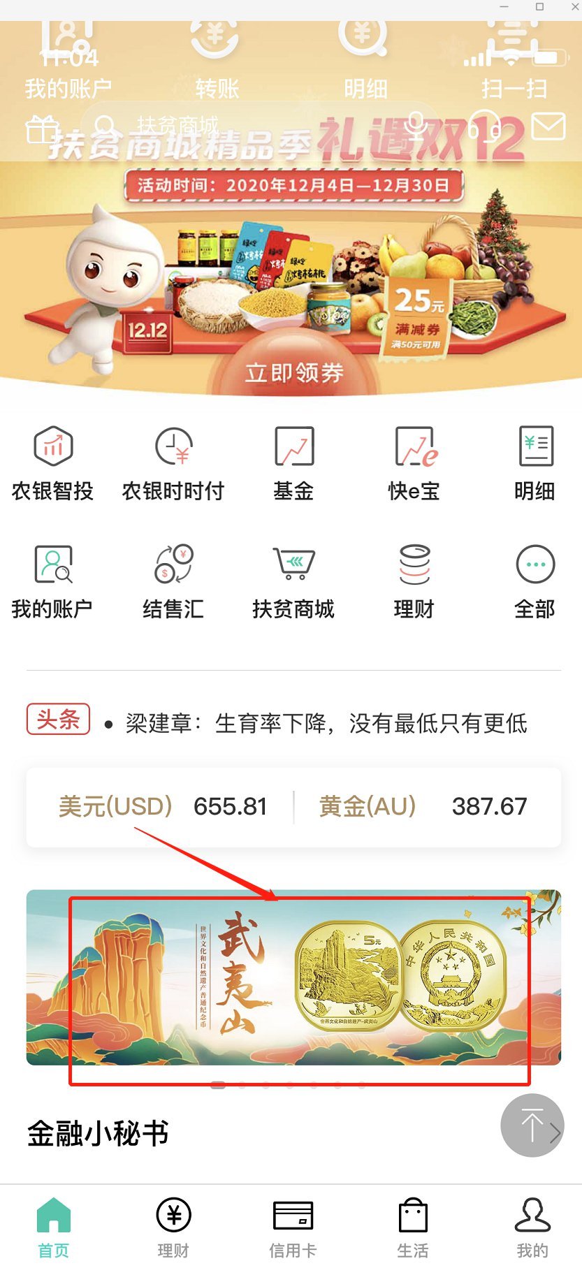 注:如果没有找到,可以农行app首页直接搜索“纪念币”。