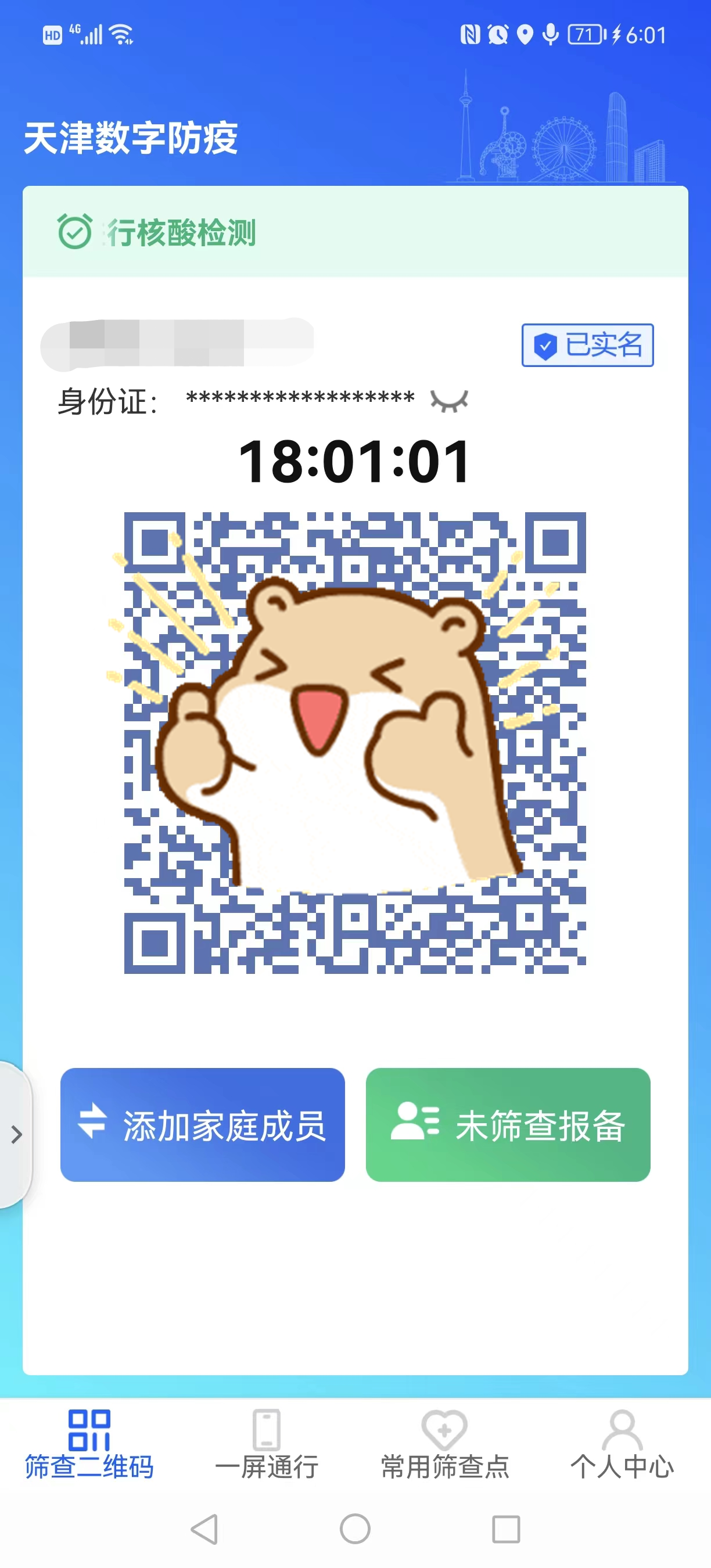 1、下载并打开“天津数字防疫APP”,根据提示填写姓名、身份证号、手机号码等信息完成实名注册;