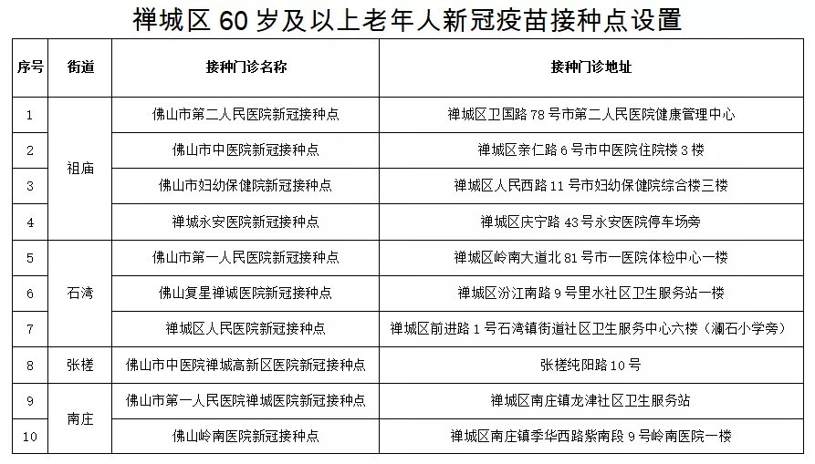 佛山禅城区60岁及以上老年人新冠疫苗接种点在哪?