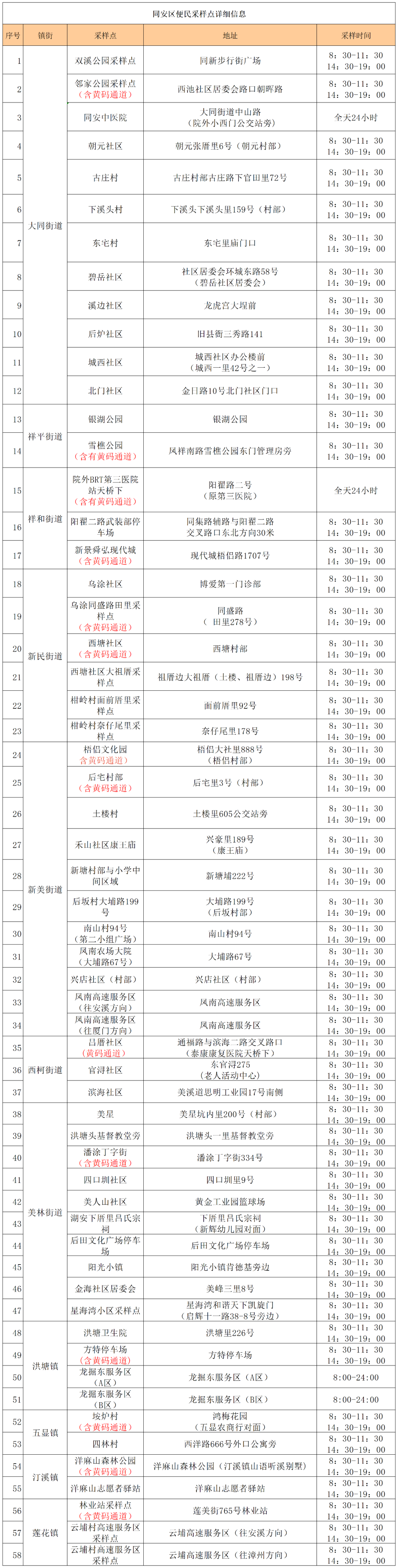 设置黄码通道的点,黄码采样时间:11:00-12:30 19:00-20:00(鼓浪屿黄码点除外)。