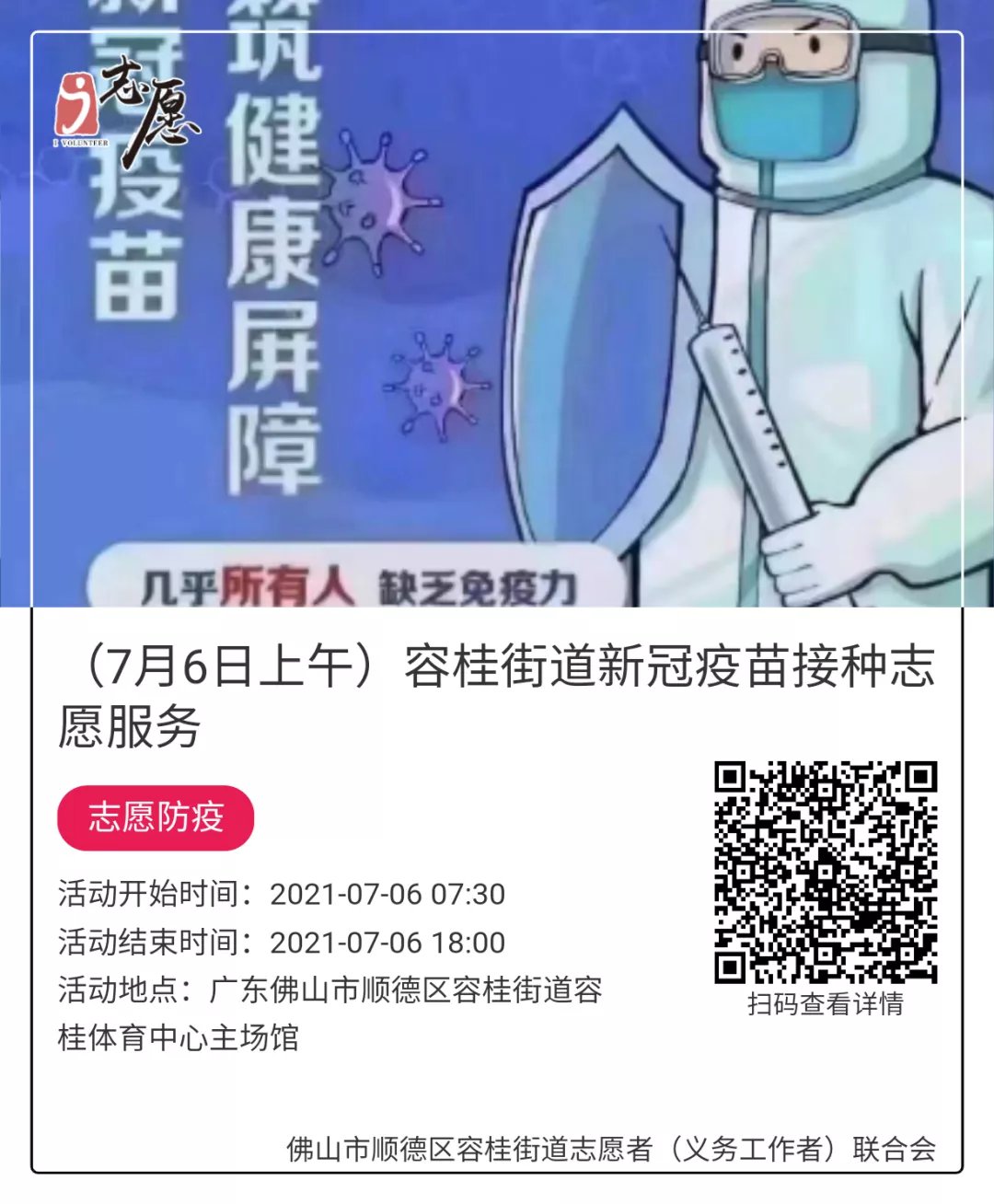 2021顺德容桂街道新冠疫苗接种招募志愿者