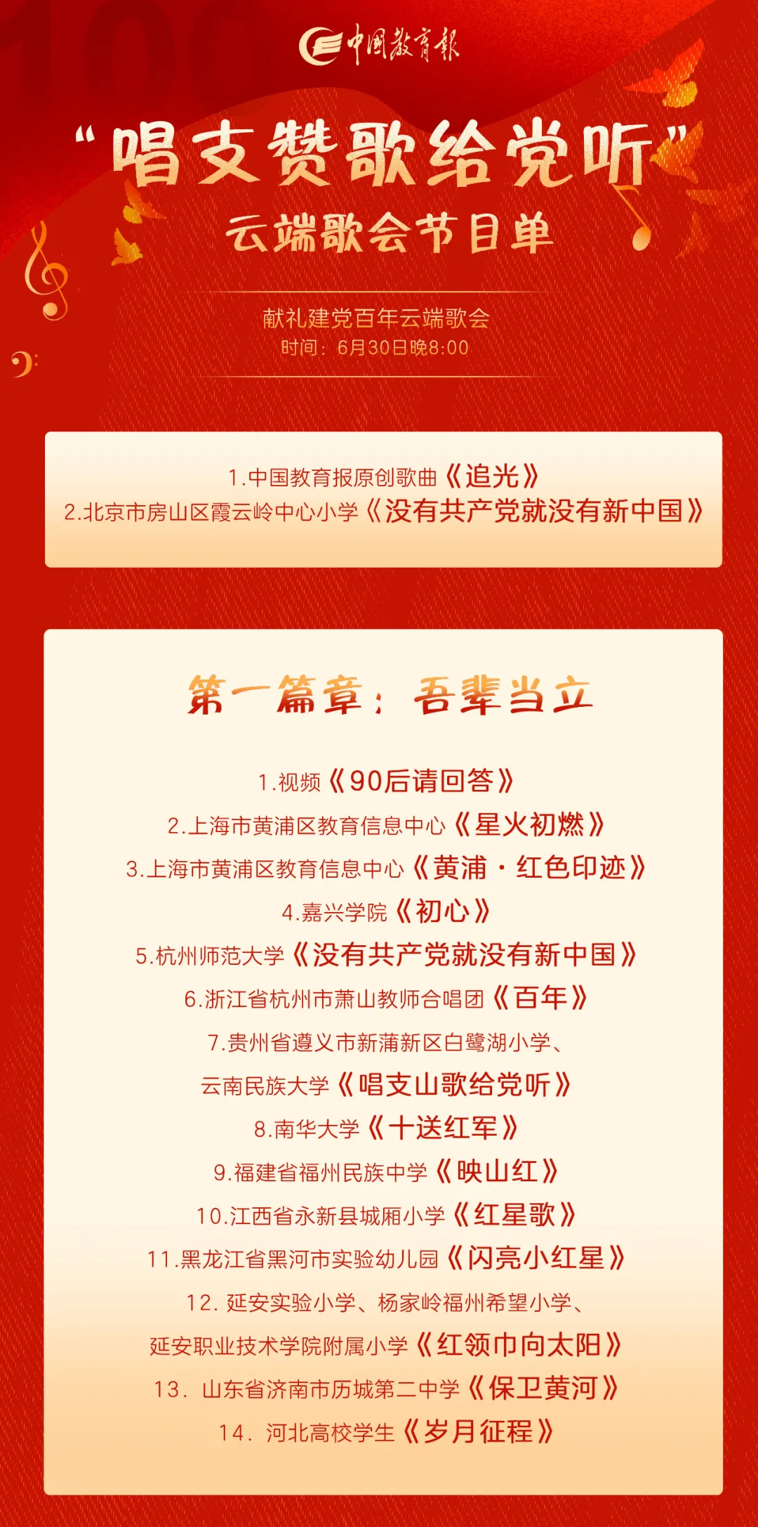 2021年中国教育报唱支赞歌给党听云端歌会节目单