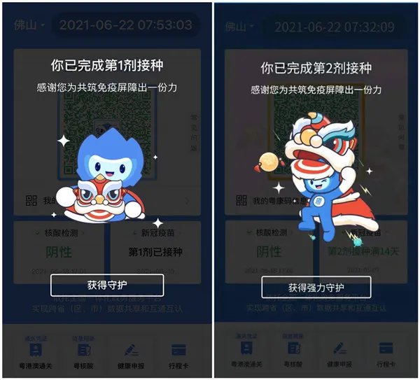 此外,为配合疫苗接种工作粤康码于6月22日上线了新“皮肤”。