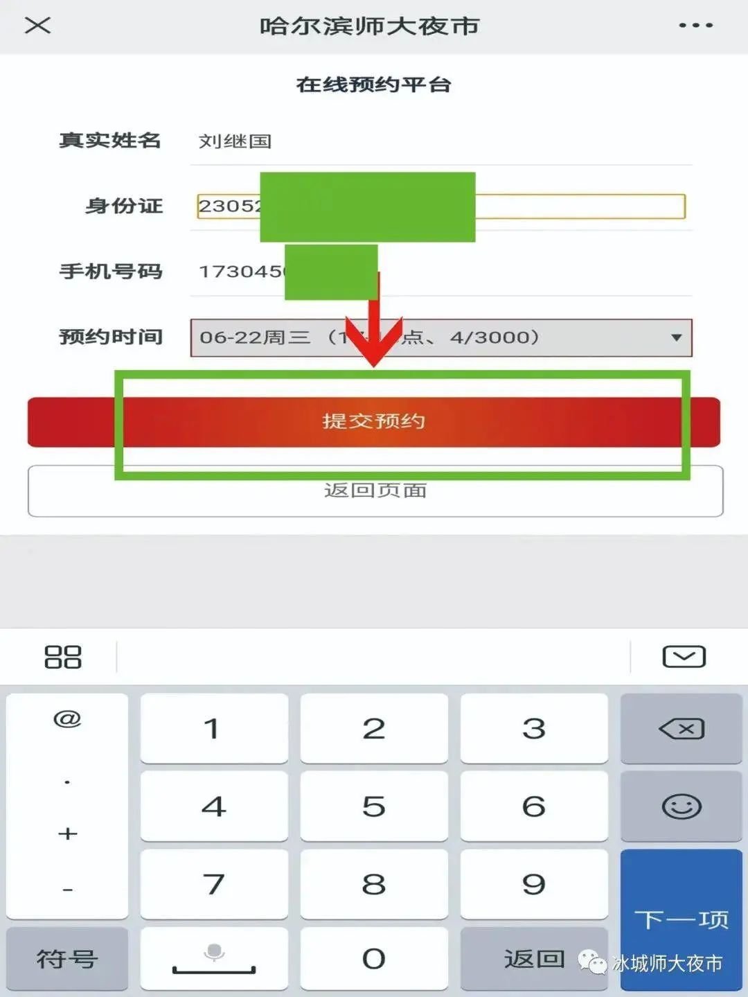 5,提交预约: