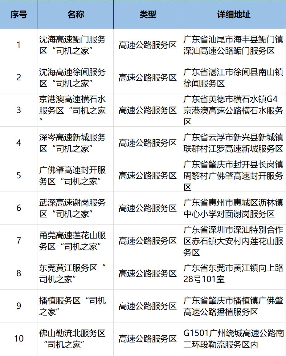 截止到目前,广东省已建成并通过省级验收“司机之家”40个。