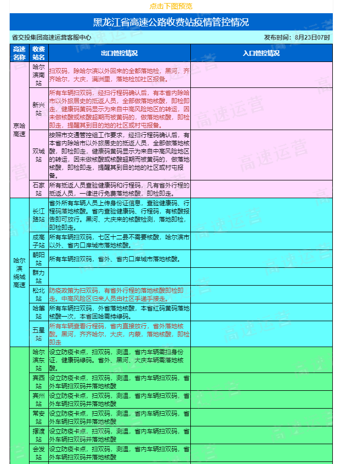 黑龙江高速出入口疫情管控实时查看:点击查看