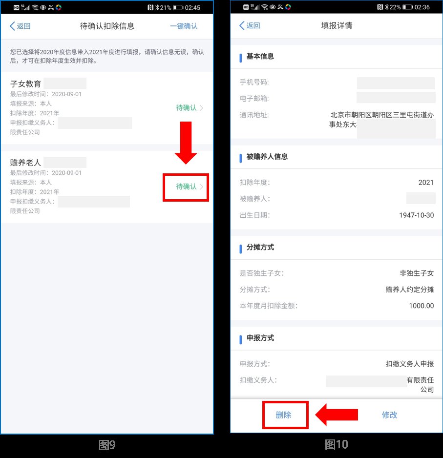 点击“待确认”状态的赡养老人信息,点击“删除”,再点击“一键确认”。如下图9、图10: