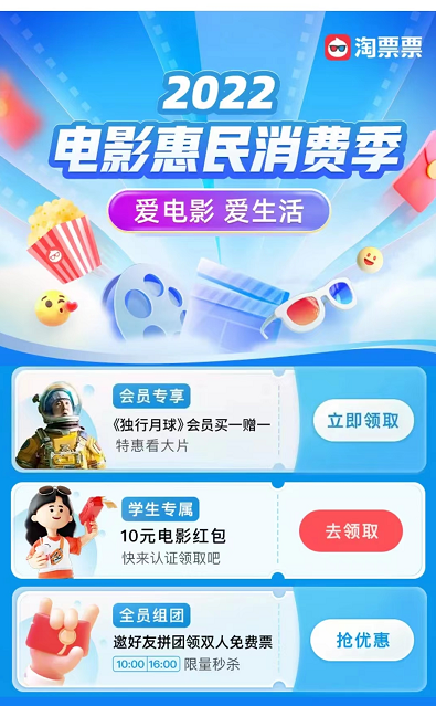 2022淘票票电影惠民惠民消费季消费券如何领取?